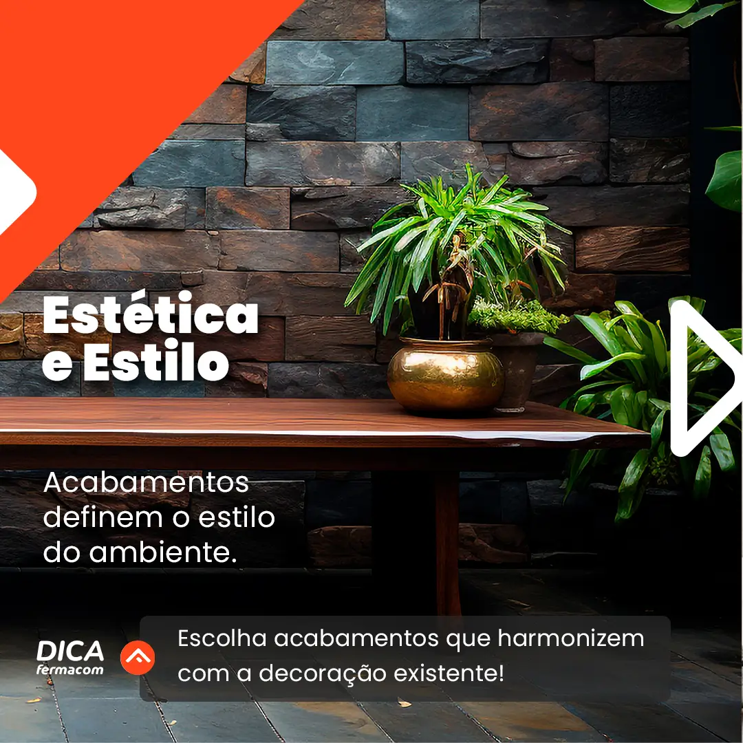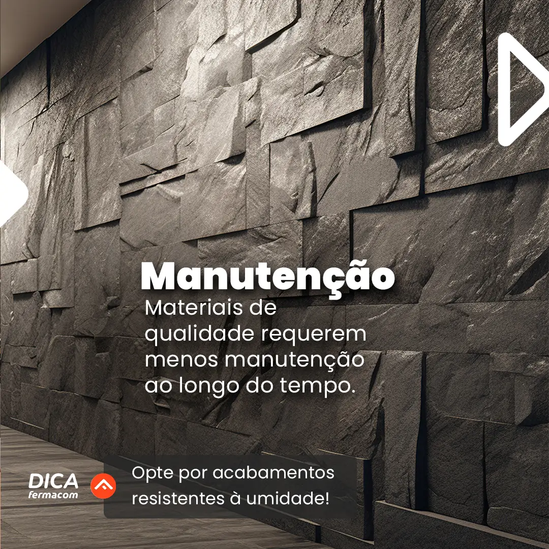 Investir em materiais de qualidade garante que eles resistam ao tempo e ao desgaste. Acabamentos de baixa qualidade podem descascar, desbotar ou deteriorar rapidamente. Dica: verifique as especificações do fabricante e a garantia dos materiais que você está considerando.